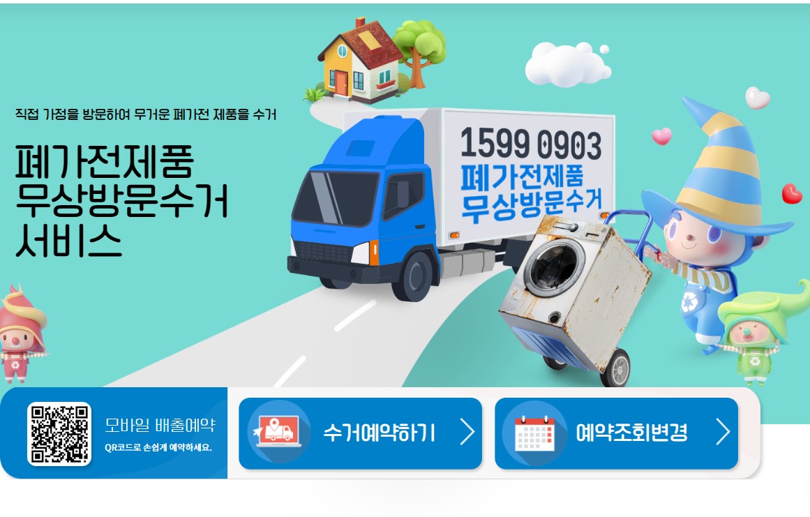 냉장고, 세탁기, TV, 에어컨 같은 대형 가전은 제조사나 한국전자제품자원순환공제조합에서 무상 수거를 지원합니다.