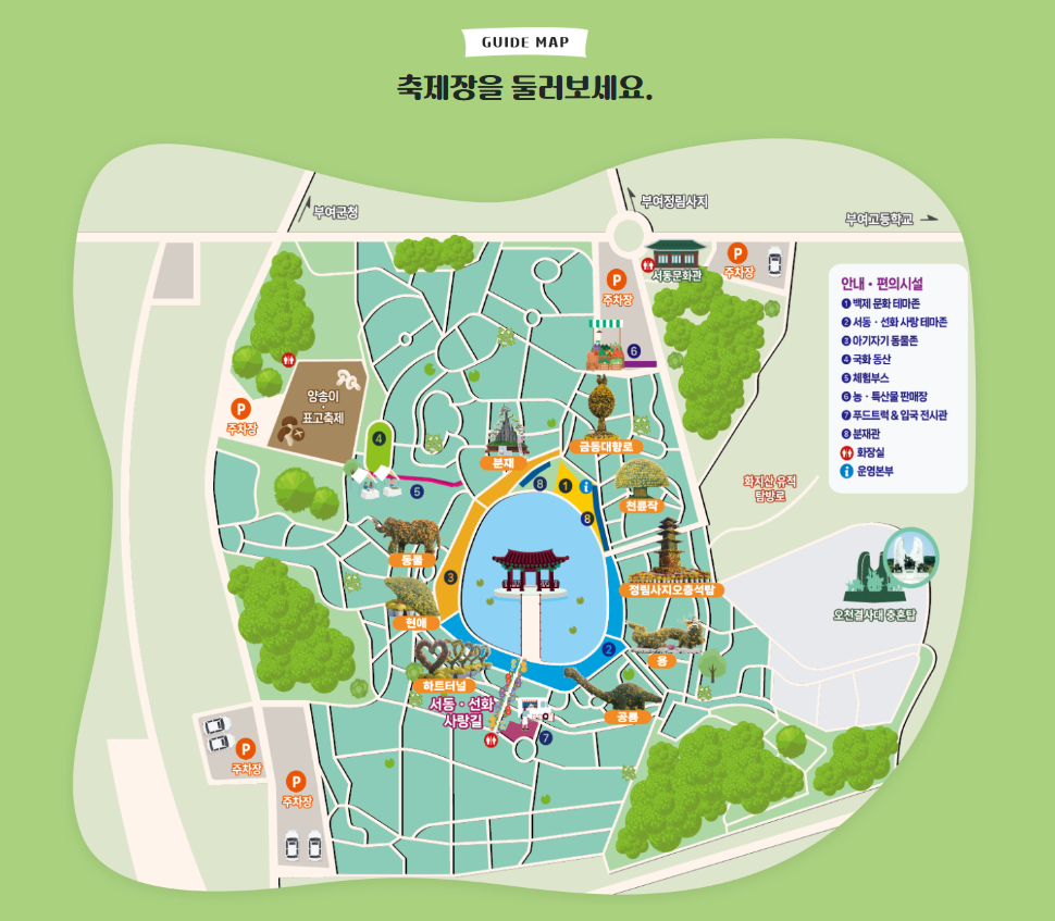 올해는 국화작품존·사비존·판타지존·서동선화존·꽃빛향연길·연꽃존 등 6개 테마로 구성돼요.