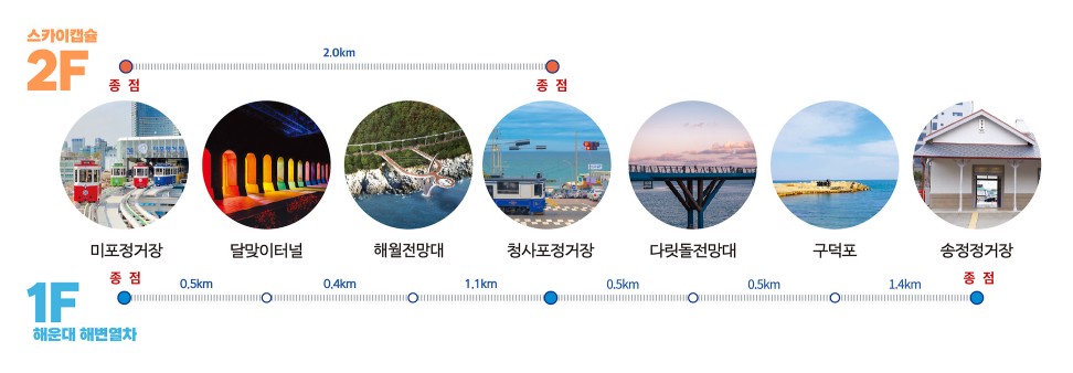 옛 동해남부선 폐선 부지를 재개발하여 해변열차와 스카이캡슐을 운영하며, 바다를 따라 달리는 특별한 경험을 제공합니다. 해변열차는 미포에서 송정까지 총 6개의 정거장을 지나며, 부산 해안의 절경을 가까이서 감상할 수 있는 열차입니다.